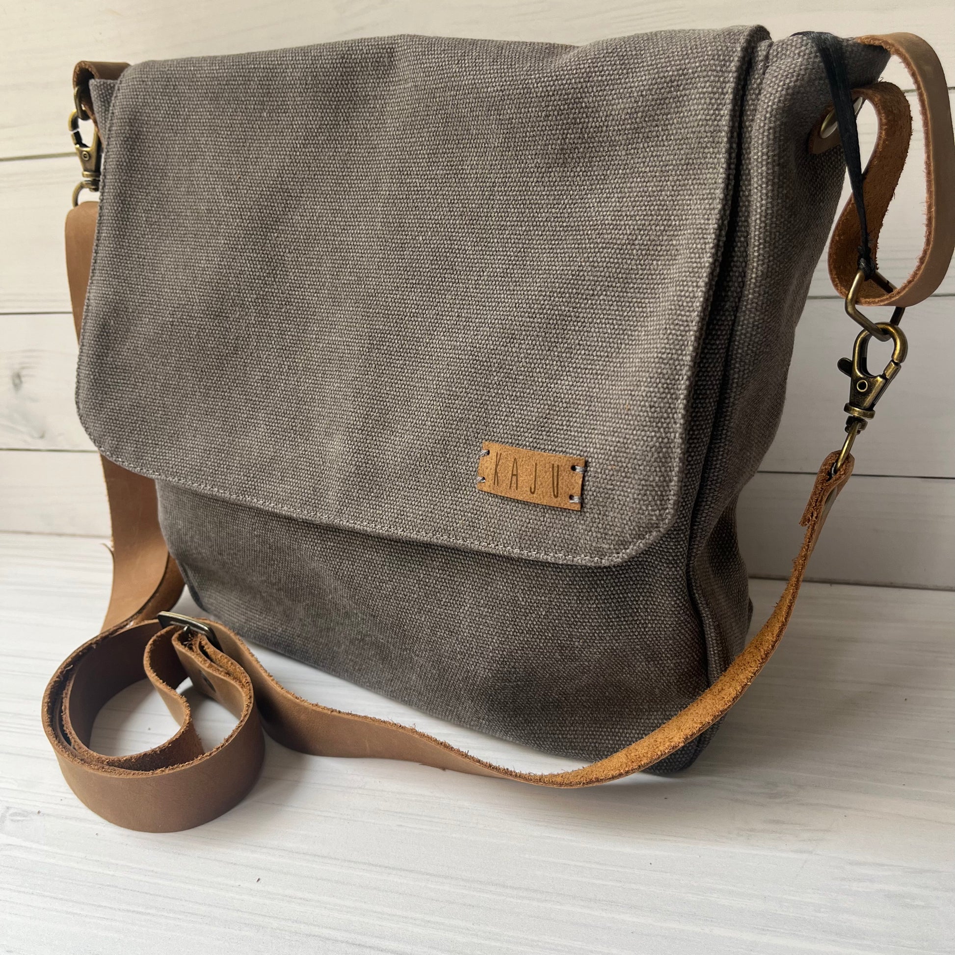 AGNES es una cartera con tapa multifuncional, mediana, de algodón y forrada. bolsillo Y pieza interior con mosquetón para las llaves y un broche imán para cerrar. Con su tirante de cuero ajustable, es perfecta para tu día a día.