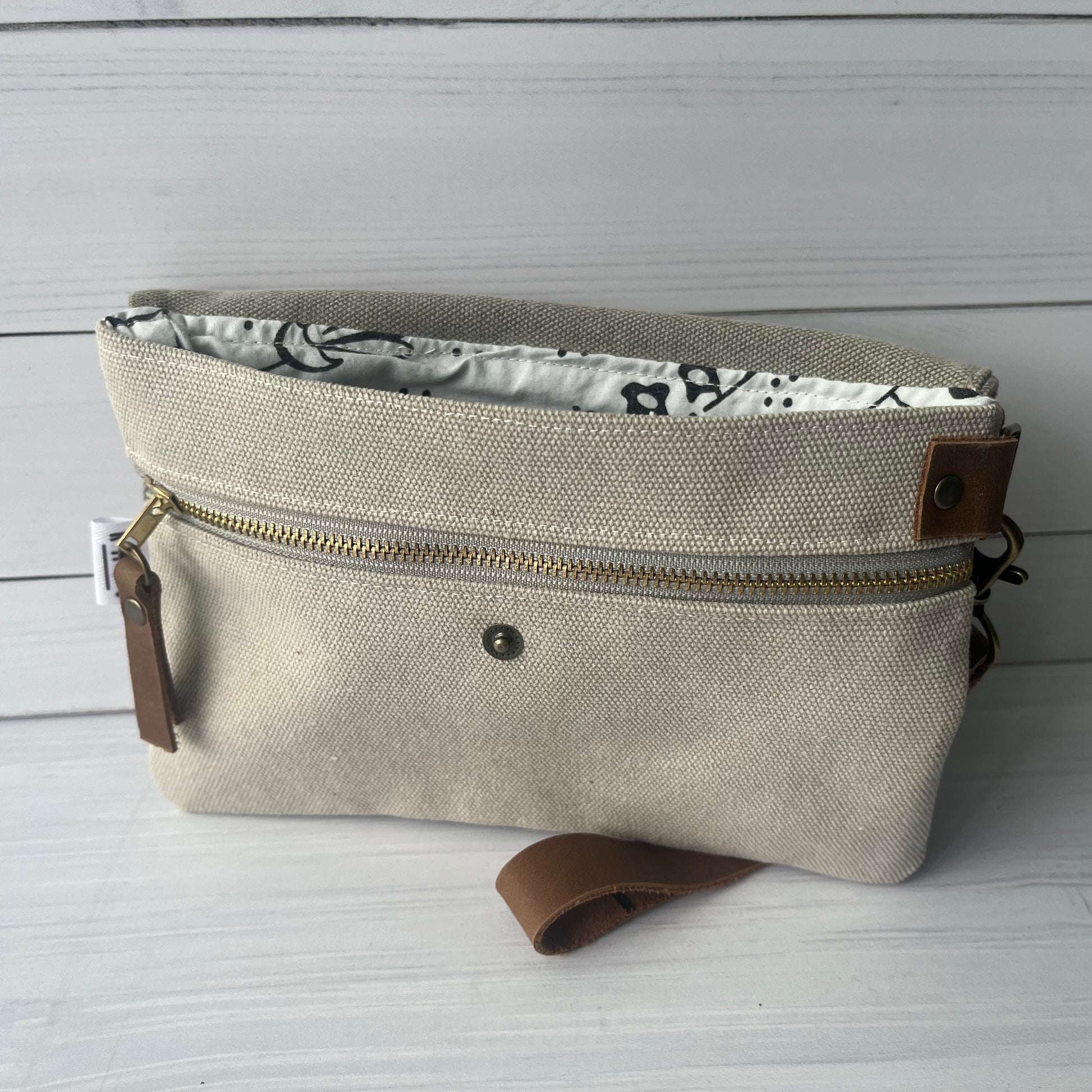 NISA es un estuche con tapa, con exterior de algodón y forro de poliéster impermeable. Cuenta con un broche para cerrar la tapa.